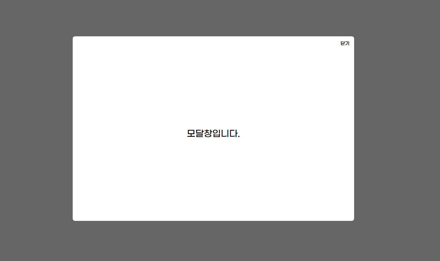 아래는 간단한 설명을 위한 코드로, modal의 background와 실제 modal의 디자인은 입맛에 맞게 지정하면 된다.