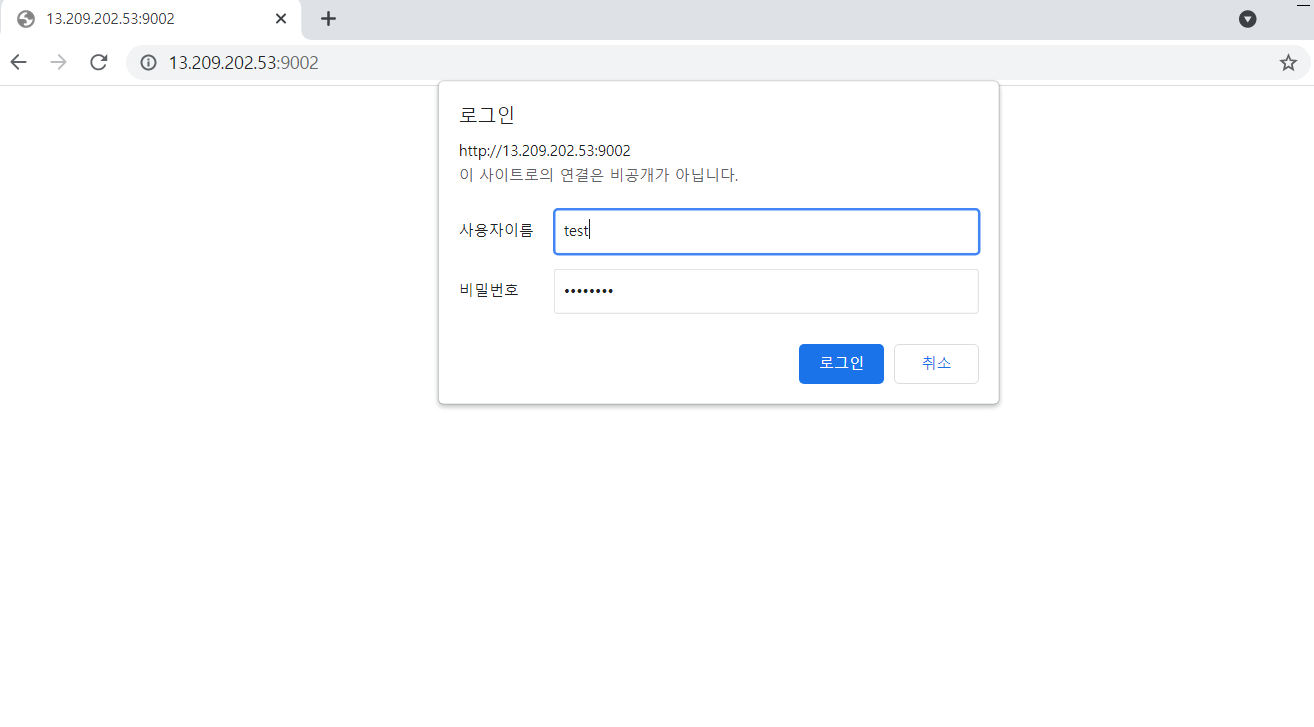 웹브라우저를 열어 고정ip와 9002 포트로 접속해보면 다음과 같은 창이 뜬다.