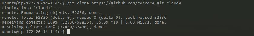 Cloud9은 git을 통해 배포되고 있어 git clone을 통해 다운로드한다.