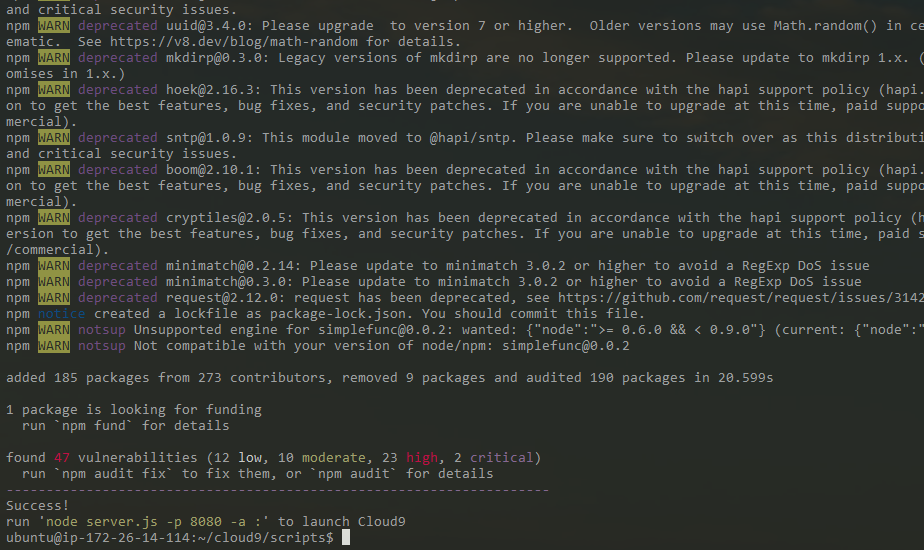 이후, cloud9 폴더에서 다음 명령어를 실행한다.